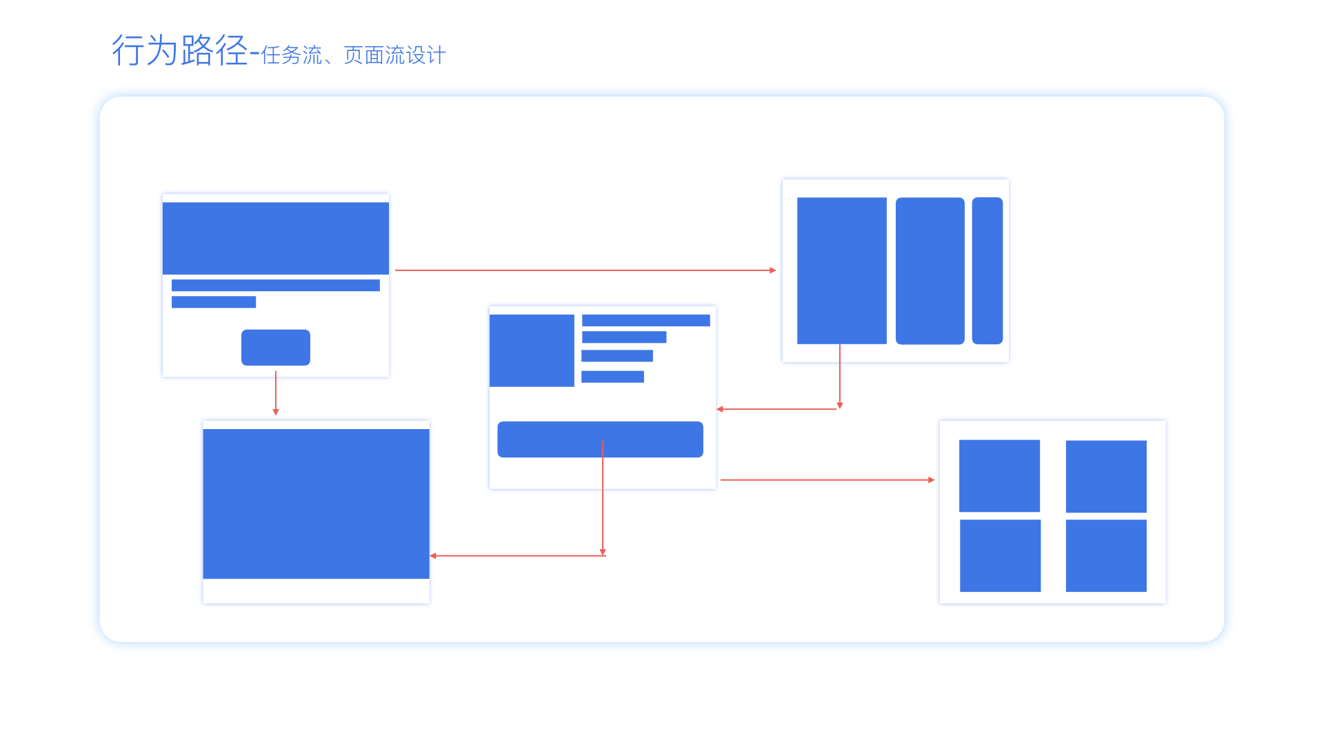 1.行為路徑-通常稱之為頁面流程圖(Page Flow),主要是關(guān)注任務(wù)流和頁面流的設(shè)計,讓用戶在使用過程中,頁面跳轉(zhuǎn)流暢,用戶使用無障礙,并且提高了讓用戶達(dá)到產(chǎn)品目標(biāo)的效率。在這個步驟中,頁面通常不用很好看,只要講清楚任務(wù)流,業(yè)務(wù)流即可。主要就是講清楚產(chǎn)品主要功能流程就行。